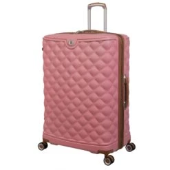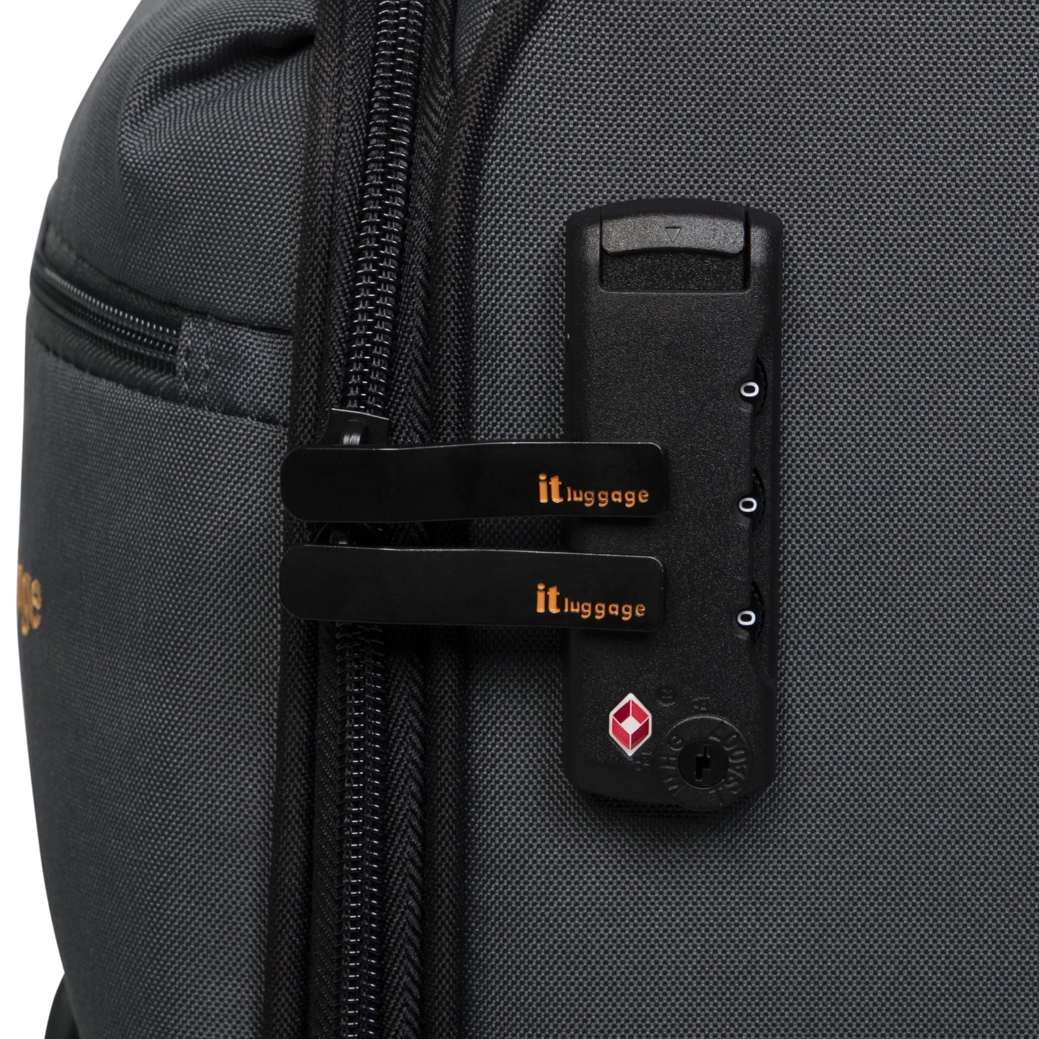 Features include an 8-wheel spinner system for superior control, a TSA lock for ultimate security, two easy-access zippered pockets on the front panel, padded grab handles for comfort, and a telescopic trolley system.