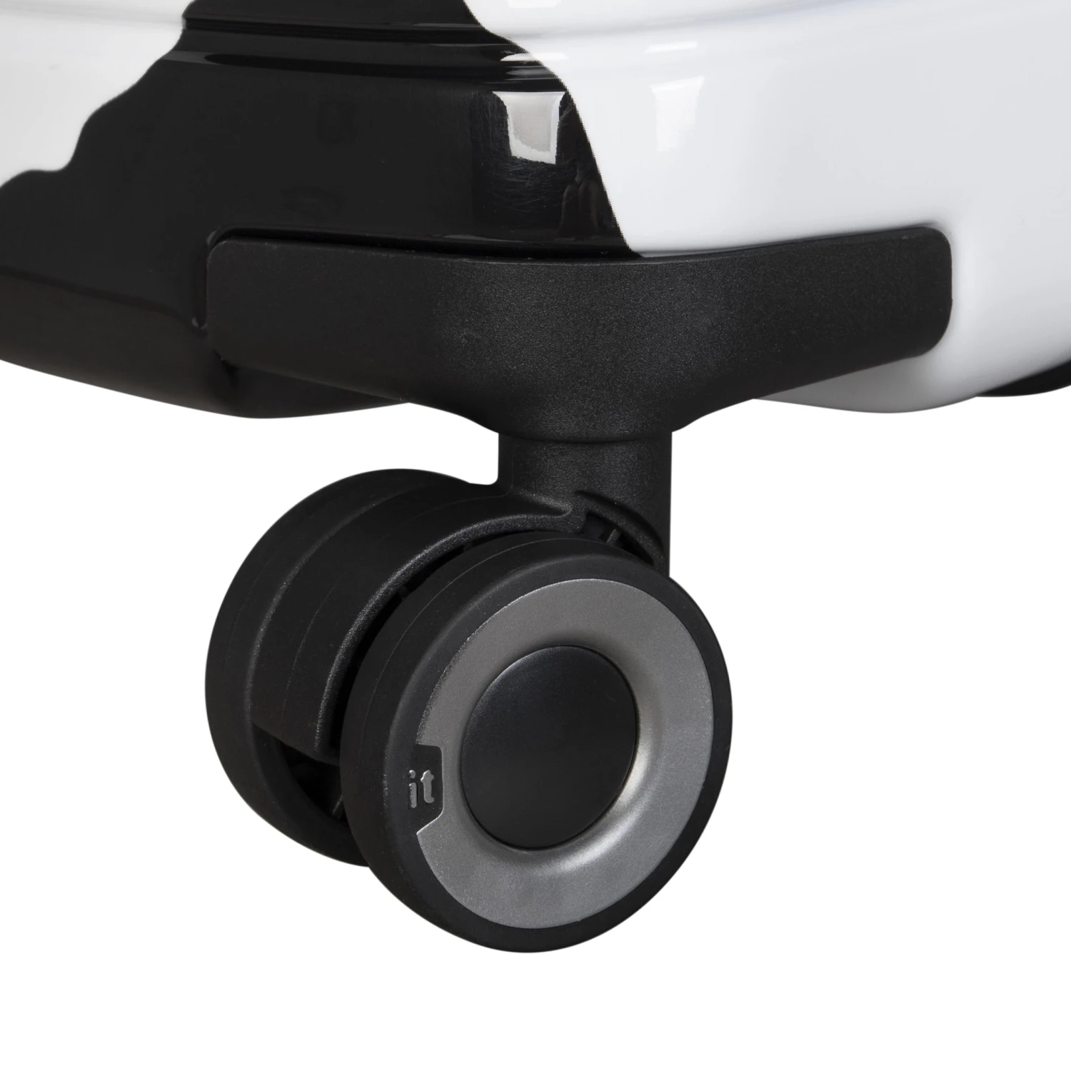It’s time to show the world you know how to indulge in some serious travel glamour! Our large Indulging suitcase will have heads turning and tongues wagging wherever you go thanks to its eye-catching black and white cow print covering a luxurious quilted outer shell.
